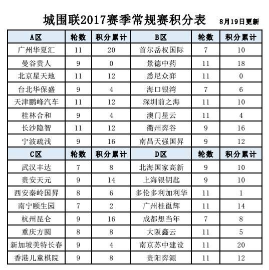 本轮过后,广州桂邕辉十一战七胜积14分,在被称为死亡之组的D区八支队伍里面暂时排在第二位,余下三轮只要再取一胜,便可进入季后赛。
