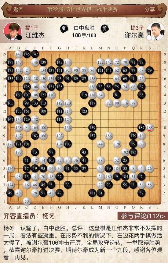 谢尔豪(中) 胜 江维杰(中)(杨冬四段解说)