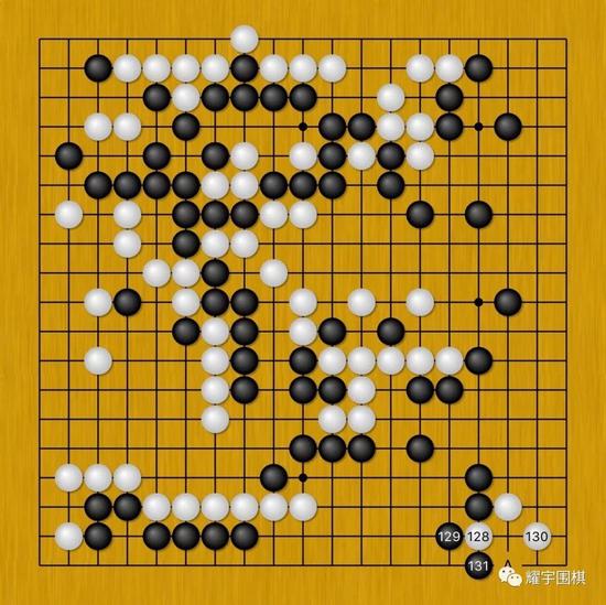 图4:局面进行到中盘阶段后期,李昌镐这时候已经取得了优势,白126点三三,黑127挡住最后一搏!意图不让白棋做活。
