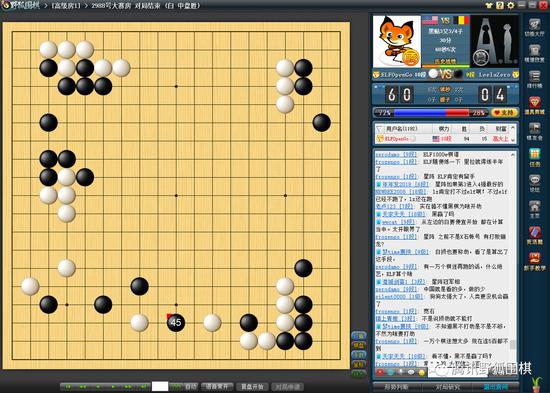 执白局的失守,意味着本场对抗极可能以ELF获胜而告终。晚上交换黑白,Leela在布局阶段落子飞快。然而围观棋迷们却越看越觉得哪里不对,仔细翻检棋谱,才发现本局前44手,与上一轮绝艺执黑对战ELF的那一盘一模一样!Leela一直致敬到第45手,才首度变招。