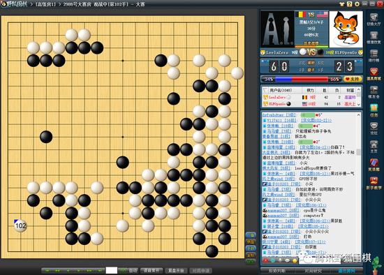 黑棋在此处非常幽默的走成了“五子连珠”之型,并凭此死死撑住右边实空。白棋继续在右下做劫渗透,黑棋再度选择铤而走险解消劫争。ELF在上边连走两手,一块黑棋葬身白棋腹中。至此复赛开赛以来,首度出现预赛排位更低一方获胜。