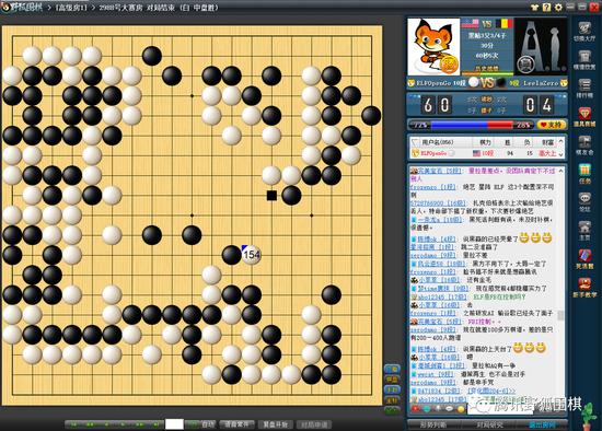 黑棋在对局的前半程紧紧咬住对手,没有被甩开差距。ELF直到中盘战斗即将结束时才找到机会。白棋将左边两块黑棋先后搜刮成两眼苦活,全盘各处皆成铁壁。此消彼长之下黑棋的形状露出破绽,第154手ELF打出教科书般的手段,一靠击中黑棋软肋。