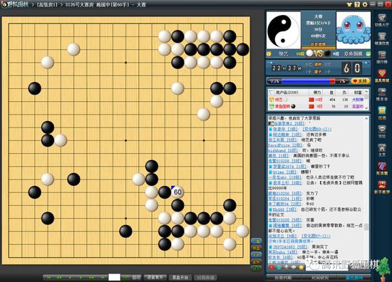 赛后章鱼在与棋友们聊天时坦陈,白棋逃出征子的那一刻,黑棋胜率已然崩盘。实战章鱼依然做出了顽强的抵抗,也正因为此,棋友们得以大饱眼福,欣赏绝艺的连环妙手。白60凌空一卡,将黑棋凌乱的形状击碎。