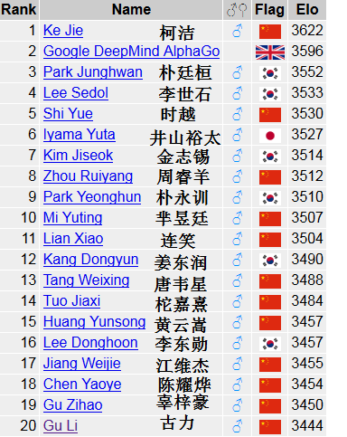 新浪体育讯 4月24日,第8届应氏杯世界职业围棋锦标赛第一阶段在上海战罢,26场对决让“Go Ratings”上的世界棋手等级分排名发生了变化。柯洁依旧高居榜首,日本井山裕太虽然达成七冠王,但排名反被在应氏杯表现出色的李世石和时越超过。以下是排名前20的棋手。
