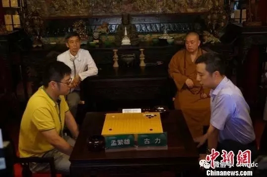 “从来名山藏古刹,自古高士留名局”。8月2日,在禅宗祖庭少林寺方丈室内,2017“少林黑白决”围棋大赛冠军选手孟繁雄向世界冠军古力九段发起挑战。中国围棋协会会长王汝南任裁判长、少林寺方丈释永信见证下,经过两个多小时的较量,在古力让七子的前提下,孟繁雄险胜古力半子。以棋论禅,两位高手也惺惺相惜。