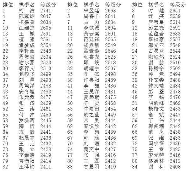7月5日,中国围棋协会对“2016年6月中国围棋协会职业棋手等级分”进行公示,遥遥领先的柯洁继续扩大着优势,而曾经两年稳居榜首的时越从第二位降到了第三位,芈昱廷升至第二位,陈耀烨回升至第四,古力回升至并列第七。