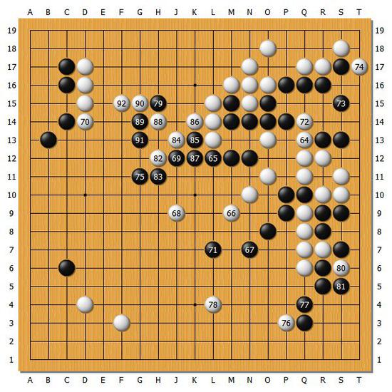 [图3]黑79打入之后,白82的碰非常敏锐。吃掉黑棋一子之后获得了不少利益。