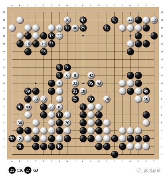 黑39实际价值不大,有走50位吃掉一子的心情。