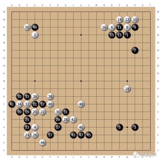 开局平淡,白18分投右边,周泓余不想让黑棋连片。