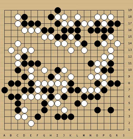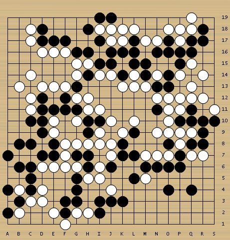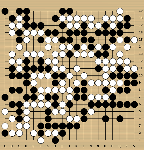 周泓余兢兢业业收完官子,最终黑棋盘面只多4目。