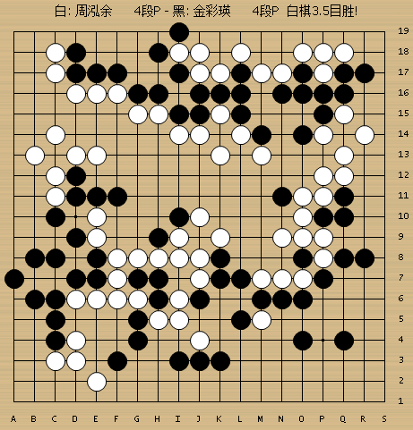 金彩瑛竭力制造头绪,但白棋中腹全厚了,黑棋找不到发力的点。