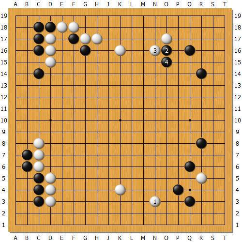 图③简单弃子是贵阳天元在暂停期间摆的第一个图,但认为白棋下方模样太大,黑棋不满意。