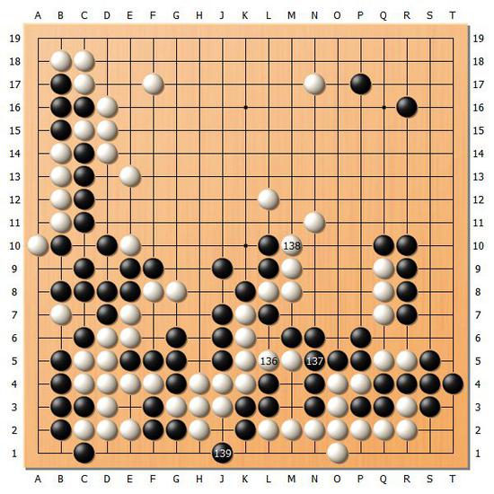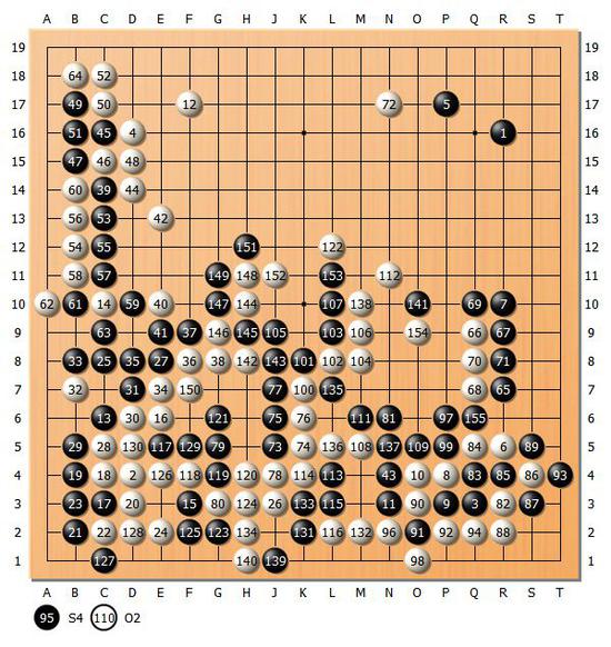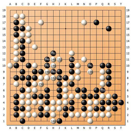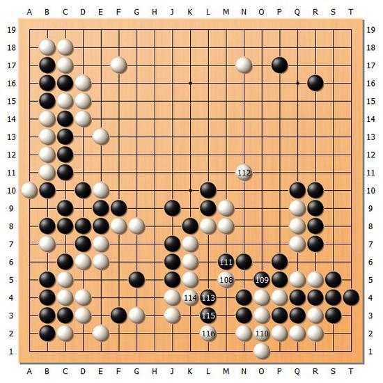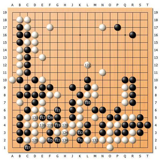 [图11]黑117的碰开始,白棋的形势急转直下,或许白棋在这一带出现了严重失误。
