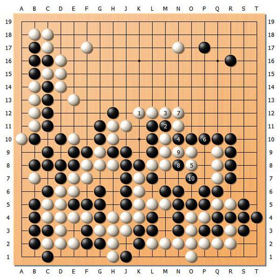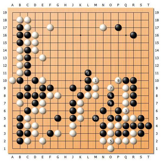 [图10]当然对白棋来说,白3是非常关键的一手棋,不过黑10是好手,这样白棋也无法吃掉黑棋。