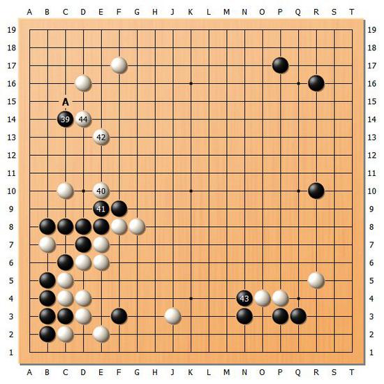 [图2]从实战的进展来看,白44是许家元比较后悔的一手棋,此时在A位尖顶的话或许会好一些。