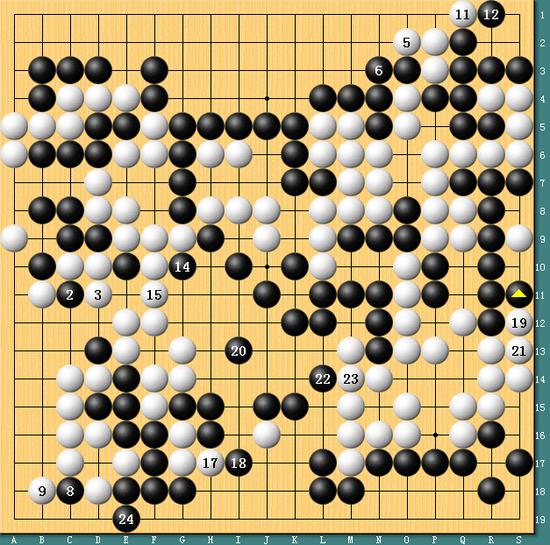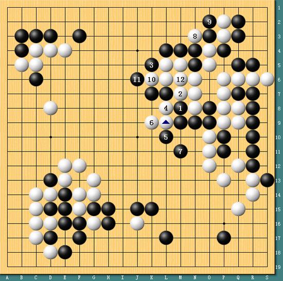 图二,硬来则崩溃。如果杨鼎新1位拐硬要封锁白棋,那么白4-6先手,8位断吃也是白棋的权利,这样10-12位后黑棋上边有两个弱点补不过来,直接面临崩溃。