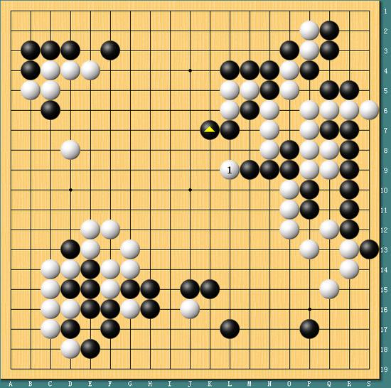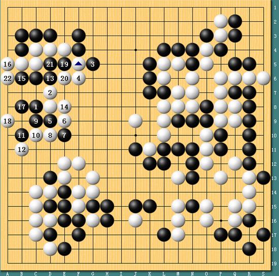 图三,从长计议。实战中杨鼎新只好妥协,从长计议。不过黑棋右边虽然损失不小,上边虽然有所收获,但整体还是被动。