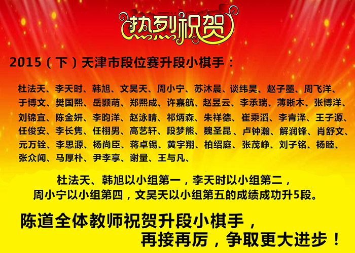 祝贺! 2015(下)天津市段位赛升段小棋手!