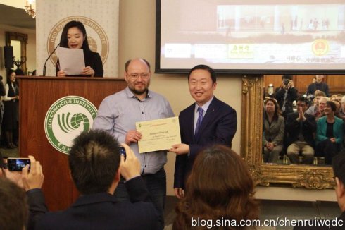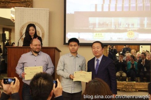 中国驻爱尔兰大使岳晓勇先生出席颁奖仪式并为获得冠军的选手颁奖。