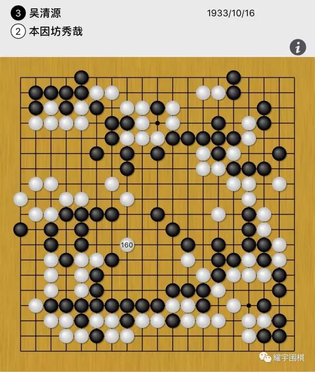 上一篇关于新布局革命的文章登出后,大家在后台和评论区都很踊跃留言,我发现大家很关心一个问题,那就是秀哉执白的第160手,到底怎么回事?今天我就跟大家聊聊吴清源和秀哉这盘世纪名局: