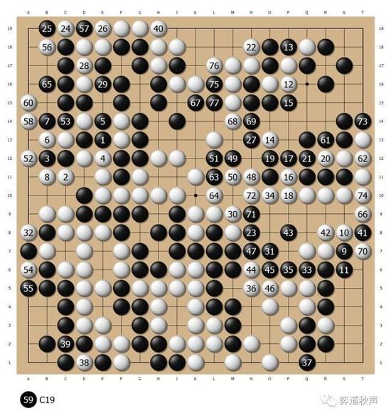 尽管差距不断缩小,但棋盘空间有限,黑77后,盘面仍相差10目以上。